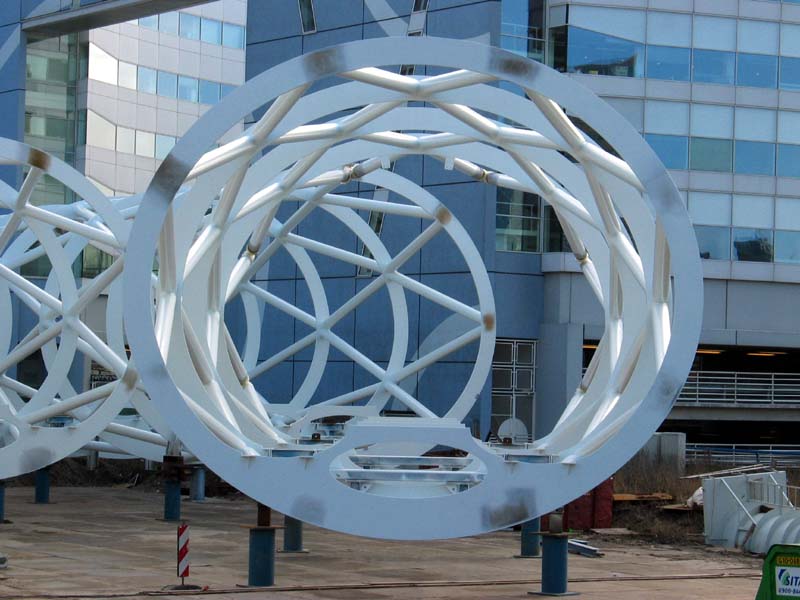 Op de plaats van de hal komen betonnen pilaren en wordt de "Netkous" afgebouwd.
