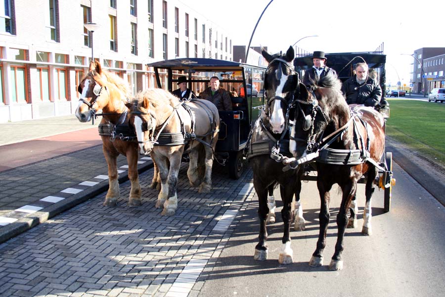 Na een korte toespraak stapte Wethouder Bruno Bruins samen met de genodigden in een paardentram om