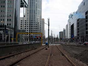 Nieuwe sporen op het Weena richting station (Foto: © www.digitaletram.nl) |