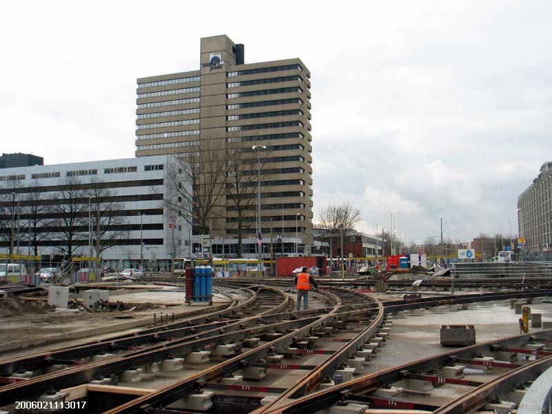 | Aanleg nieuwe tramsporen bij Rotterdam Centraal (11 februari 2006) |
