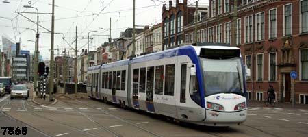 De 3027/3 op de Laan van Meerdervoort met reclame voor het Mauritshuis.