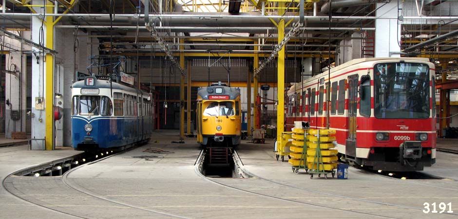 Op 7 april 2007 staat de Haagse PCC 1180 tussen twee trams die van oorsprong uit Duitsland komen.