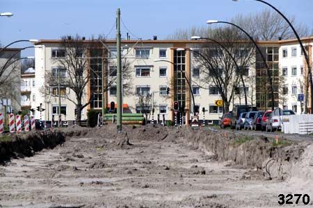 Op maandag 23 april 2007 zien we op de Laan van Wateringse Veld steeds meer bovenleidingmasten verschijnen.