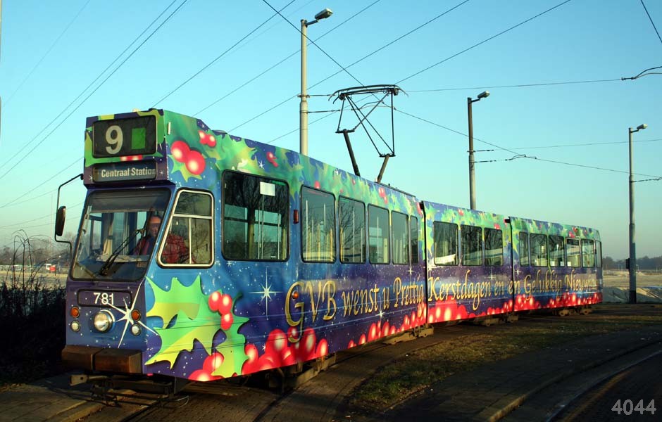 Op 22 december 2007 reed deze Kersttram op tramlijn 9 tussen het Centraal Station en Diemen Sniep.