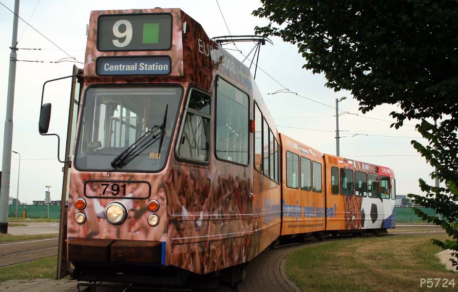 Er rijdt weer een EK-tram door Nederland. De 791 van het GVB is beplakt, ondanks dat er geen reclametrams meer in Amsterdam rijden.
