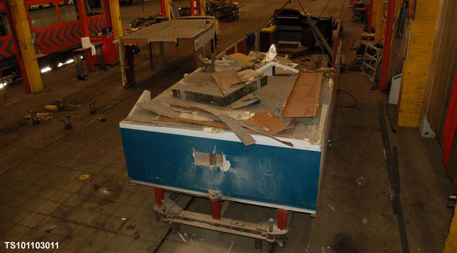 De ex-1207 is in de werkplaats aan de Lijsterbesstraat in hapklare brokken uiteen gevallen en daardoor geen railvoertuig meer.
