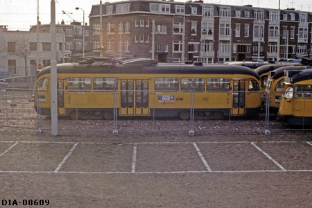| Trams op het achterterrein van remise Scheveningen (19 december 1982) |