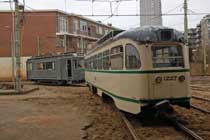 Vanwege de verbouwing aan de voorzijde staan een aantal trams nu omgekeerd in de remise