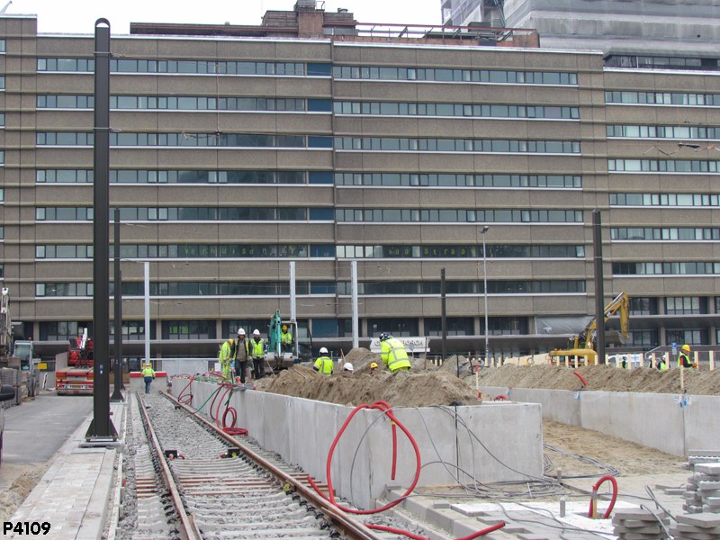 Op vrijdag 22 maart 2013 waren de sporen van tramlijn 2 gedeeltelijk op betonnen blokken gelegd en moesten de GTL's op deze locatie stapvoets rijden.
