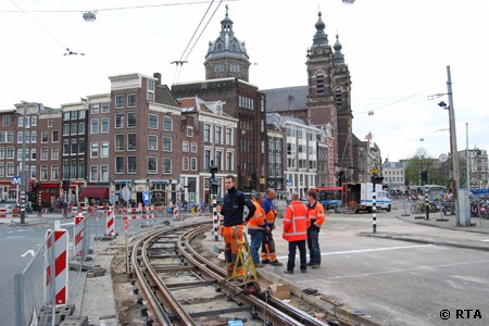 Op de Prins Hendrikkade en bij de Kamperbrug werd op 9 juni 2013 gewerkt aan het vervangen van de tramrails.