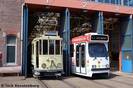 De Tramweg-Stichting reed met de HTM 2 en de NZH A327 om het halve uur tussen Scheveningen Haven en Scheveningen Noorderstrand.