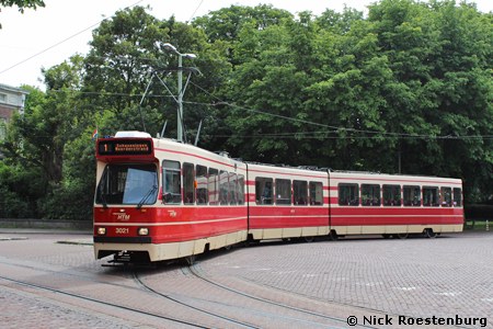 Het H.O.V.M. reed met PCC's extra ritten op tramlijn 11 tussen Station H.S. en Scheveningen Haven.