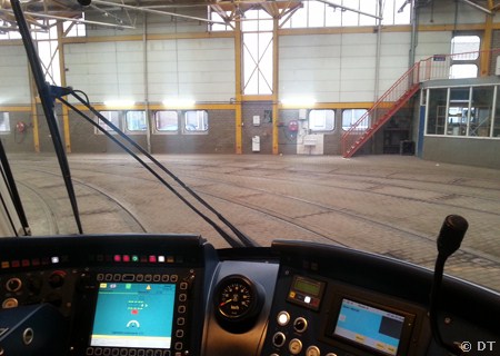 Het testen bestond uit het rijden van diverse rondjes over De Werf en via diverse sporen in de remisehal.