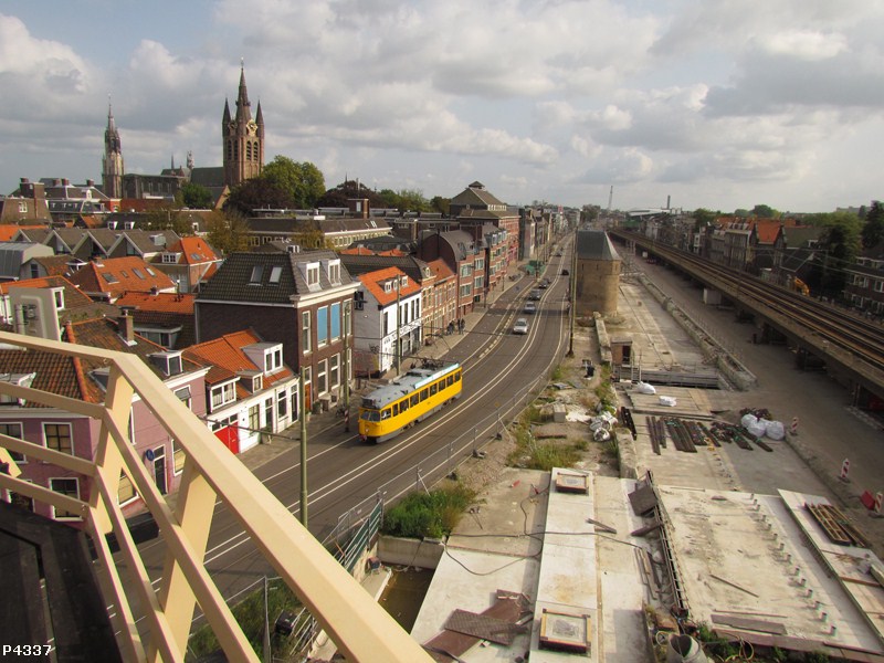 In Delft was er de gelegenheid om de oude museumtrams te observeren vanuit de molen in de Phoenixstraat.
