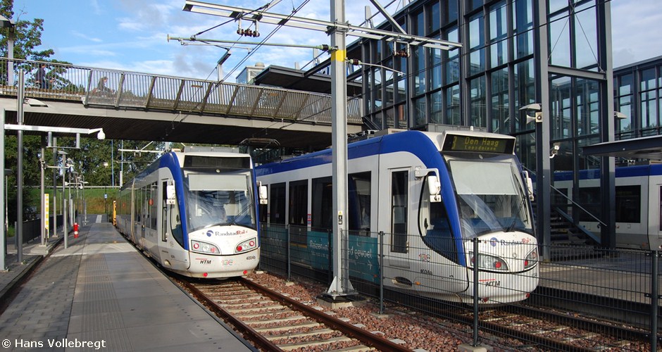 Bij de halte Nieuwe Plantage staan de oude buitenlijners even kort naast een moderne buitenlijner