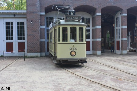 In het Nederlands Openlucht Museum in Arnhem is de Haagse motorwagen 274 klaar voor de tramdienst.