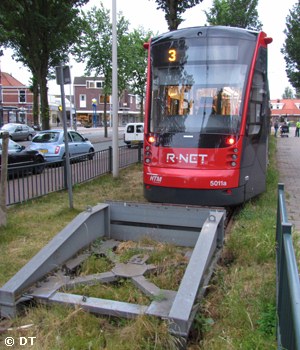 Voorlopig wordt de route van tramlijn 2 tussen de zevensprong en Kraayenstein nog niet bereden zodat er nu vaker over RandstadRail lijn 3 wordt gereden.