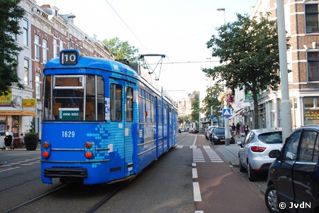 In Rotterdam is instructietram 1629 al enige tijd in blauwe kleuren uitgedost als #Windows10Tram op tramlijn 10.